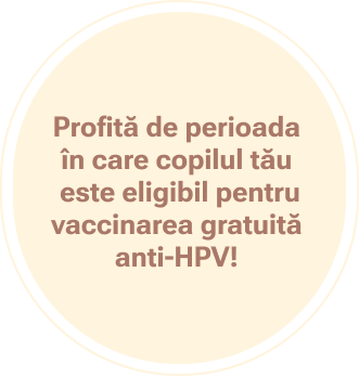 Vorbește cu medicul tău de familie și solicită vaccinarea anti-HPV pentru a-ți proteja copilul de anumite cancere ce pot apărea mai târziu în viaţa sa, ca urmare a infecției persistente cu HPV.