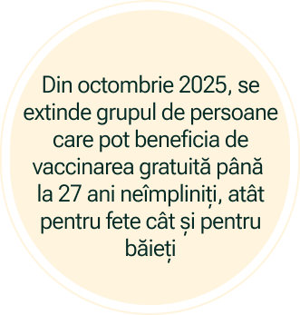 Vaccinarea anti-HPV este compensată 100% pentru fete și băieți cu vârsta între 11 și 27 ani neîmpliniți, pe baza unei reţete compensate* eliberată de medicul de familie sau de medici de orice altă specialitate, aflați în contract cu casele de asigurări de sănătate.